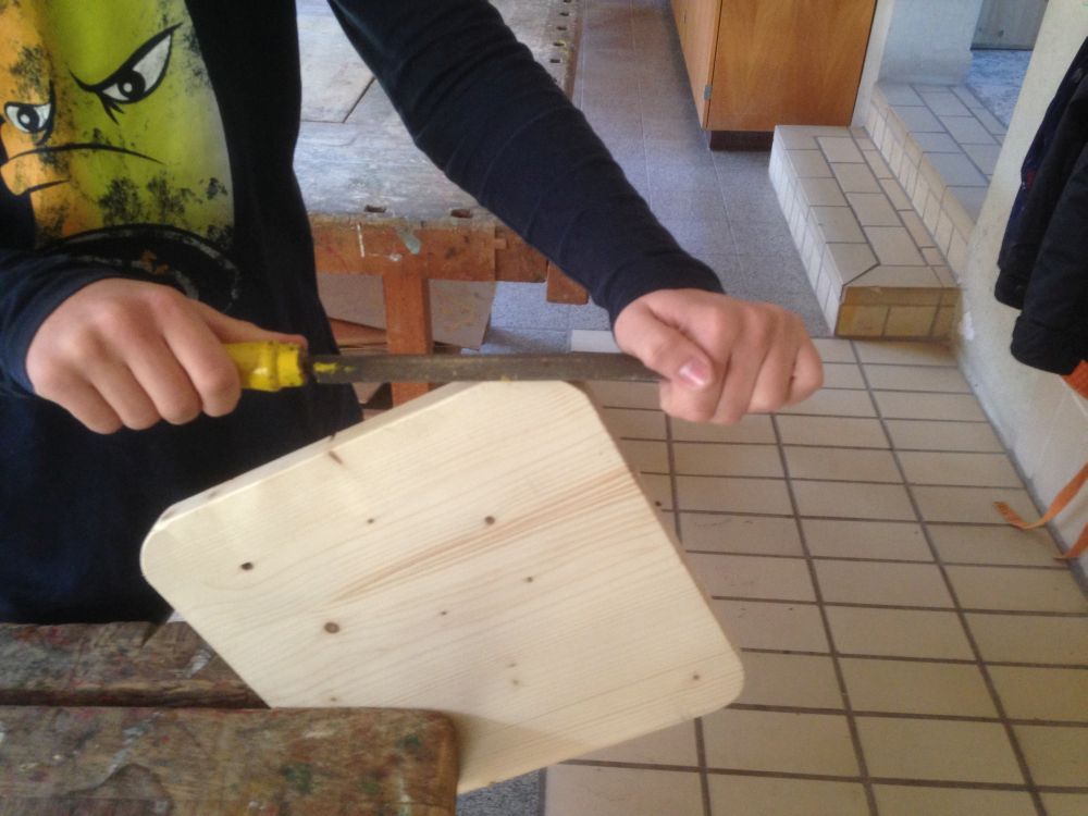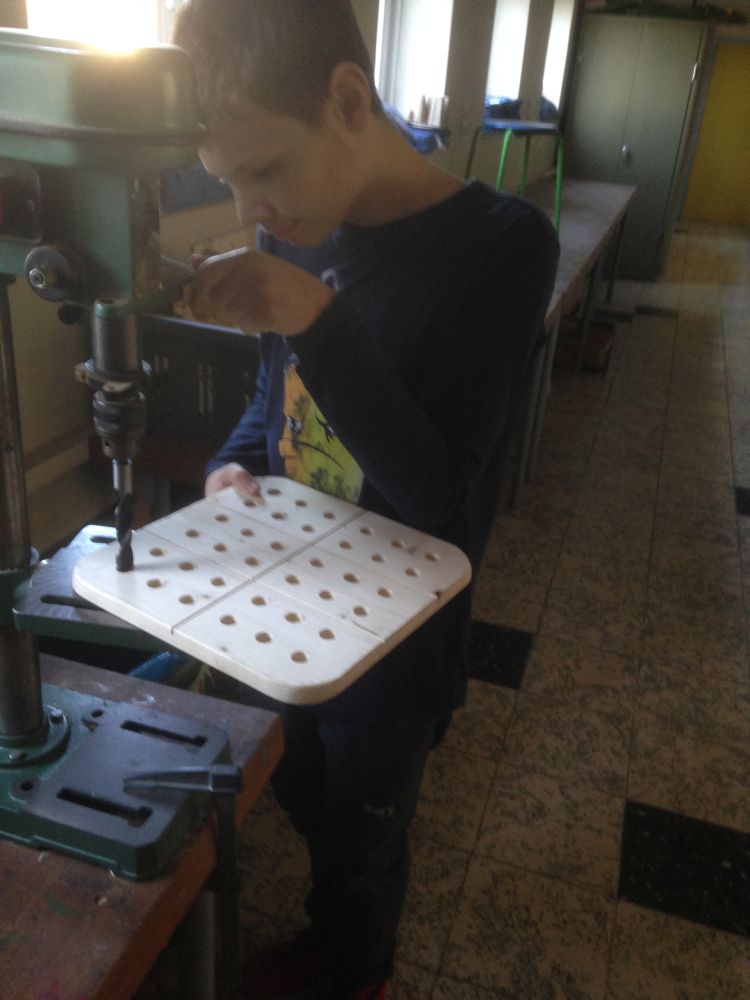 Nachdem die Neugier geweckt wurde, haben die Schüler nach notwendigen Planungsüberlegungen mit dem Bau begonnen. Dabei wurden unterschiedliche Werkzeuge, deren Nutzung und Funktion besprochen und ausprobiert. Je nach Fertigkeit und Fähigkeit benutzen sie unterschiedliche Hilfsmittel und Schablonen, sodass sich keiner verletzt und jeder mit Ausdauer und Freude sein eigenes Sudoku-Spiel bauen kann.